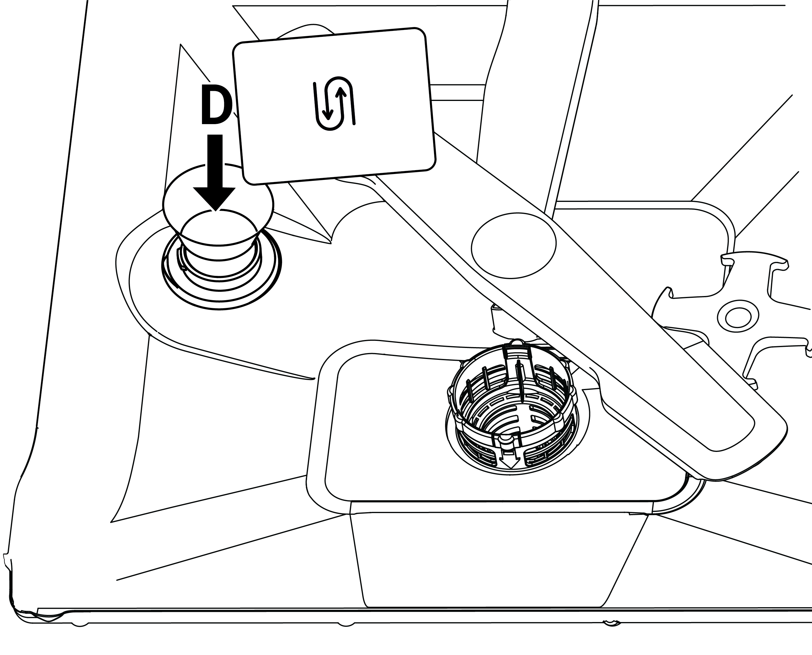4. Tuz bölmesini tuzla doldurun (D). Tuzun su içinde erimesini hızlandırmak için kaşık yardımıyla karıştırın.