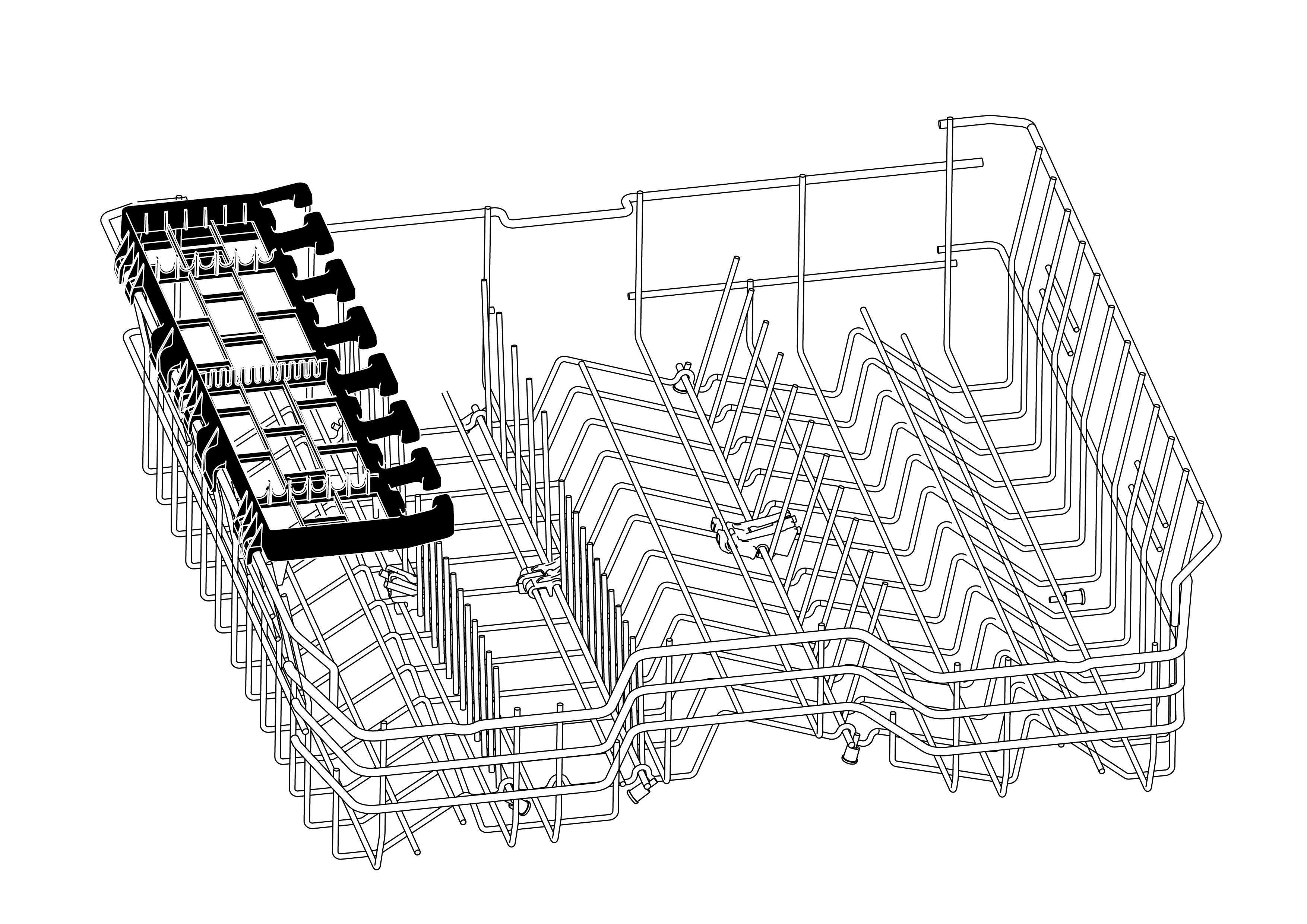 Üst sepet çok amaçlı servis rafını tekrar kullanmak için üst sepetinizin kenarına kolayca takabilirsiniz.