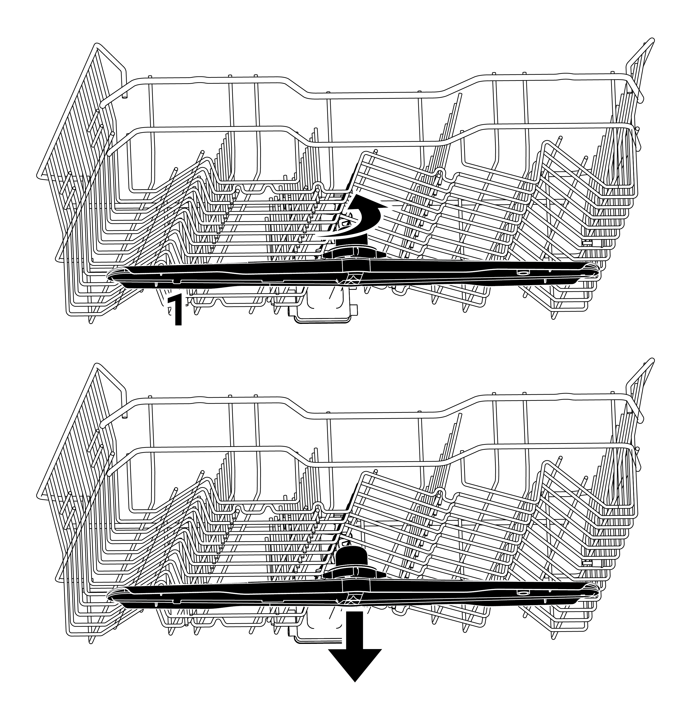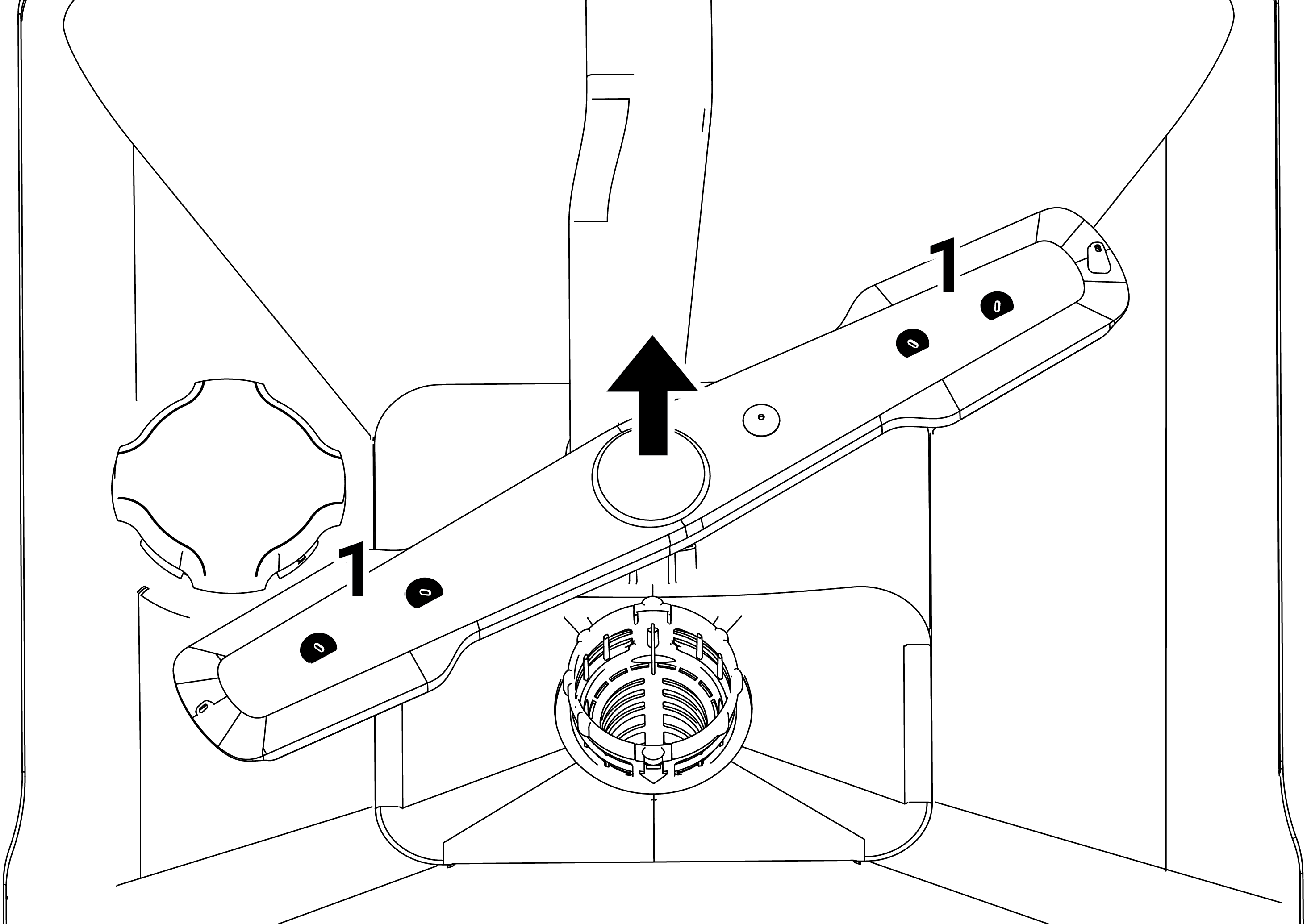 Alt pervane (1) deliklerinin tıkanıp tıkanmadığını kontrol edin. Tıkanıklık varsa pervaneyi çıkarıp temizleyin. Alt pervaneyi yukarı doğru çekerek çıkarabilirsiniz (modele bağlı)