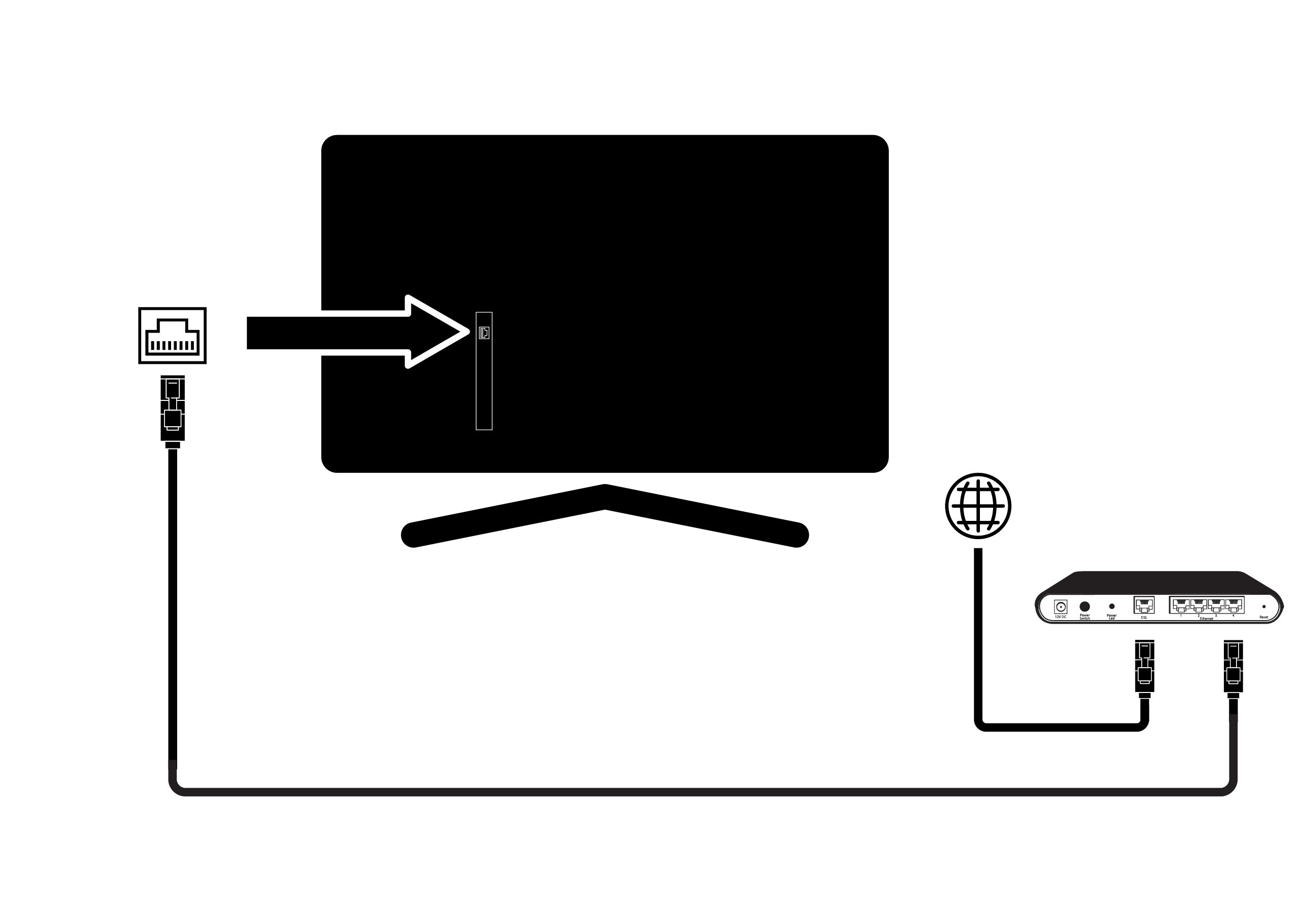 Подключение к проводной сетиПодключите выход внешнего модема к разъему LAN нажатием кабеля кат. 5.Примечание:Соединительные кабели не входят в комплект поставки.