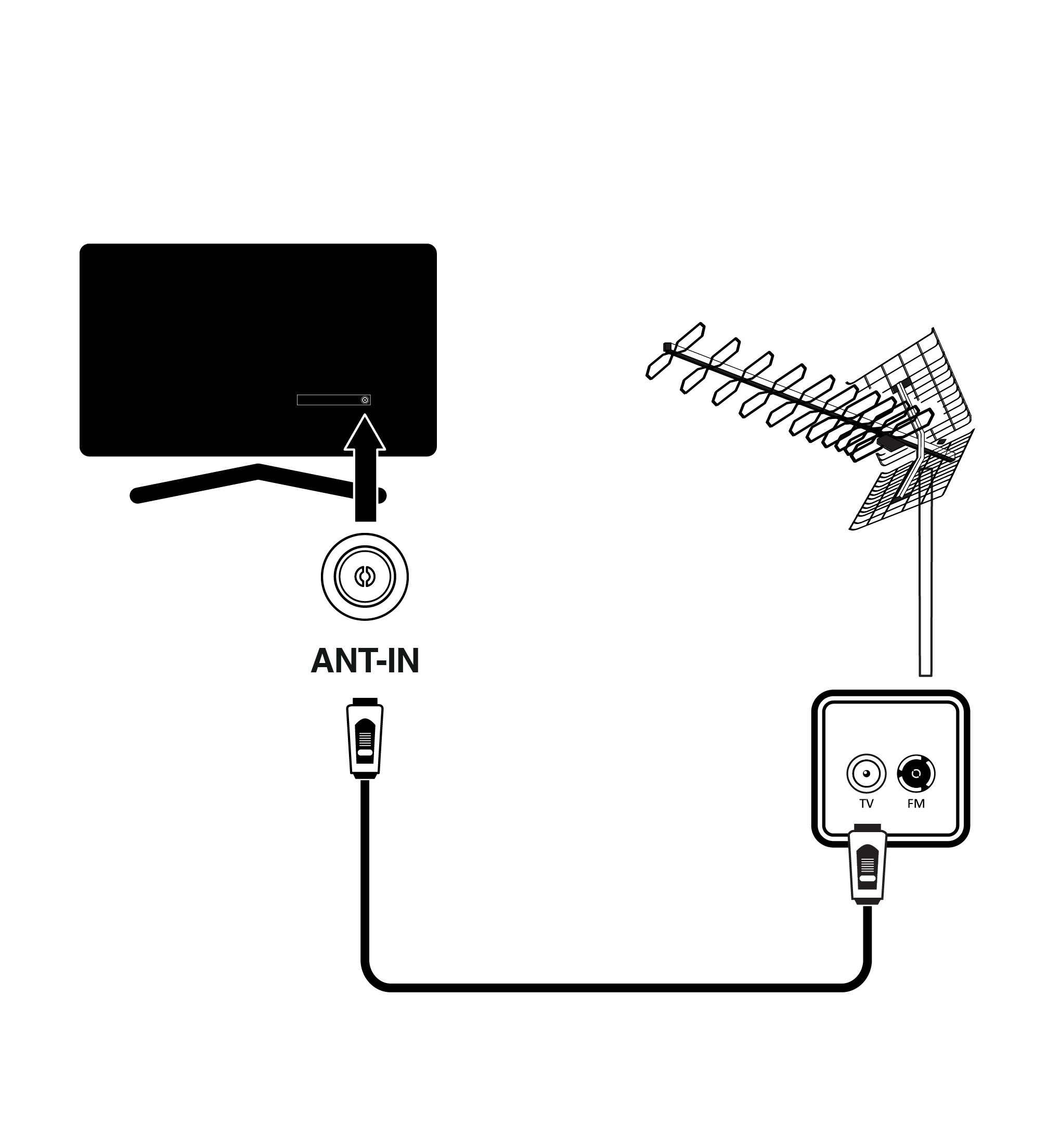 - Karasal dijital kanalları (DVB-T), Kablolu dijital kanalları (DVB-C) veya Analog yayın kanalları için anten kablosunu ANT IN girişine takın.