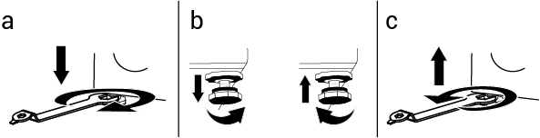 - Повторно затяните все контргайки инструментом в направлении стрелки. Вы можете переместить гайки вниз, повернув их против часовой стрелки, и вверх, повернув их по часовой стрелке.