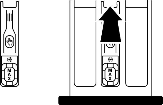 - Yumuşatıcı gözündeki sifonun işaretli noktasına bastırarak, deterjan çekmecesini kendinize doğru çekip çıkarın.